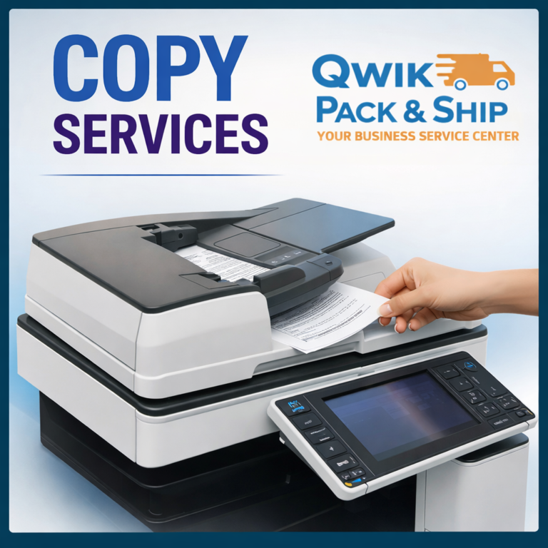 Looking for professional copy services in North Venice, FL? At Qwik Pack & Ship, we provide high-quality document copying for individuals, students, and businesses. Whether you need a few copies or bulk printing, we make the process fast, affordable, and hassle-free.